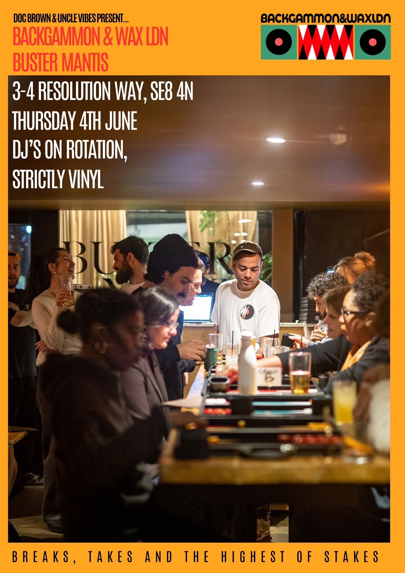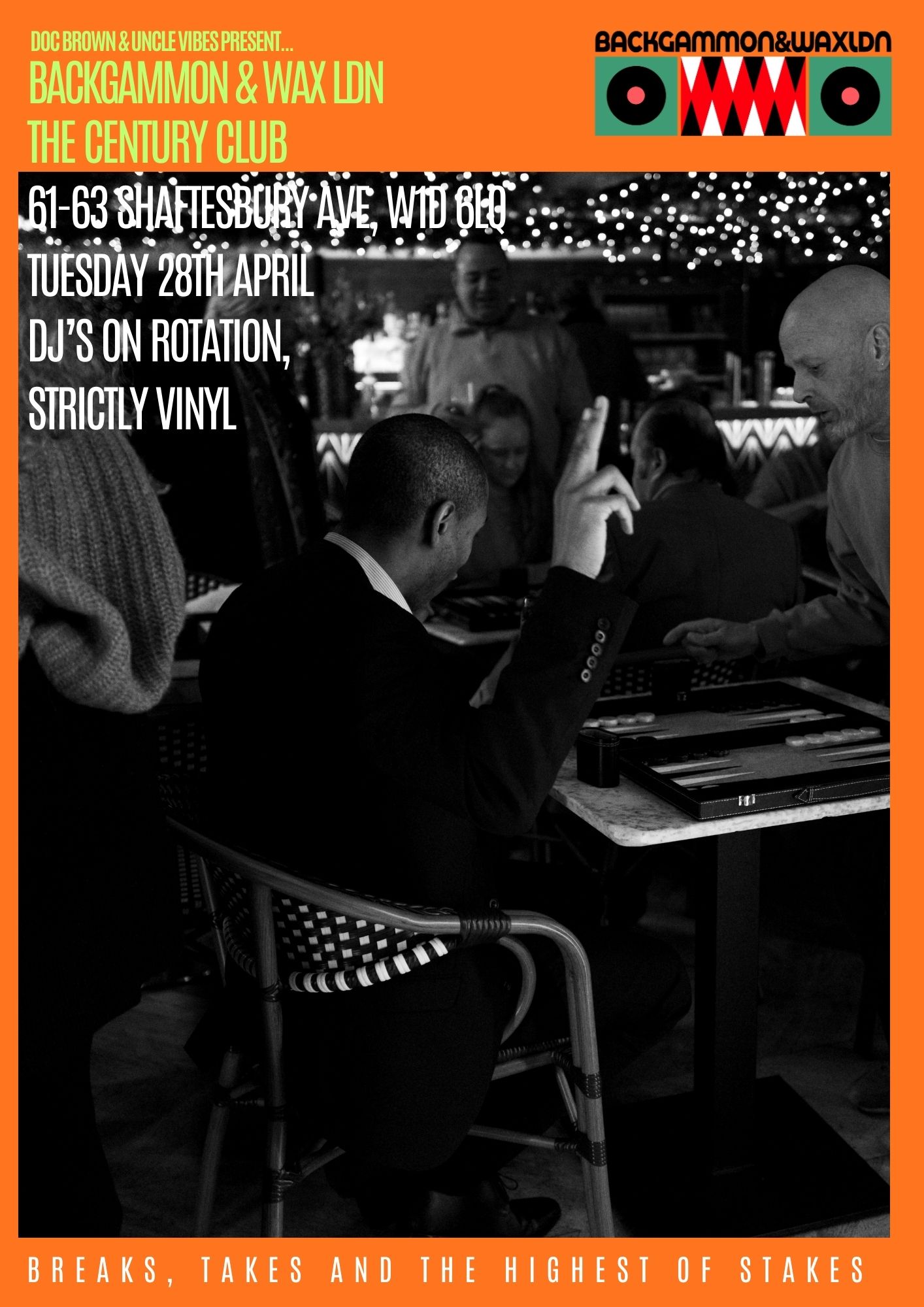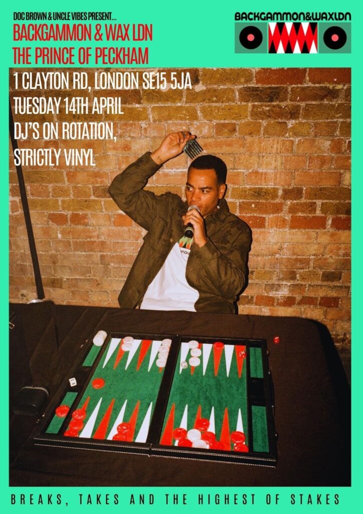 Founded in April 2025, Backgammon and Wax began as a simple idea to enable connection in a disconnected world. Created by actor, rapper and comedian Doc Brown and DJ, music supervisor and podcast host Jeremy 'Uncle Vibes” Newton, the night blends backgammon, records and a shared space.